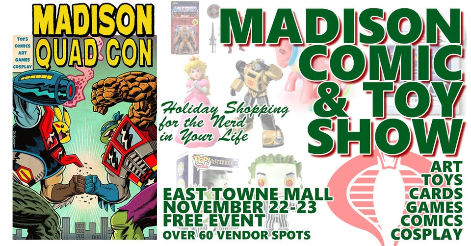 Quad Con Madison East Towne Mall, Madison, Wi, Nov 22-23. Hours; Saturday, 10-8, Sunday, 11-6 |